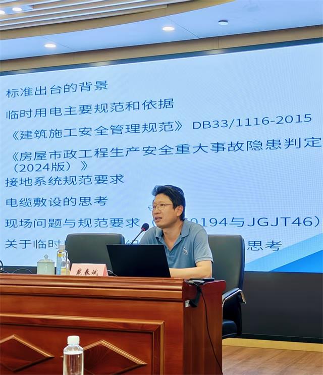 戴春斌高級工程師聚焦施工現(xiàn)場臨時用電安全,通過對《建筑與市政工程施工現(xiàn)場臨時用電安全技術(shù)標(biāo)準(zhǔn)》JGJ/T46-2024規(guī)范內(nèi)容的解讀,并結(jié)合大量施工現(xiàn)場案例,為學(xué)員帶來一場“干貨滿滿”的專業(yè)教學(xué)。同時,他依據(jù)《房屋市政工程生產(chǎn)安全重大事故隱患判定標(biāo)準(zhǔn)(2024版)》,重點(diǎn)闡述了臨時用電隱患排查的核心要點(diǎn)與方向,要求監(jiān)理人員在日常巡查中嚴(yán)格對照標(biāo)準(zhǔn),做到“早發(fā)現(xiàn)、早整改、零容忍”,切實(shí)將安全隱患消除在萌芽狀態(tài)。