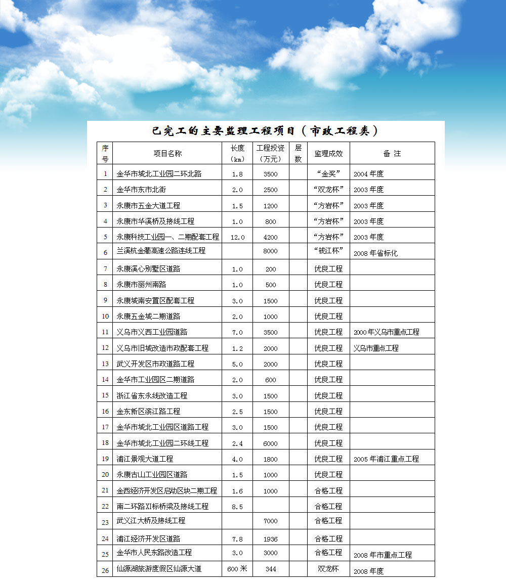 已完工的主要監(jiān)理工程項目